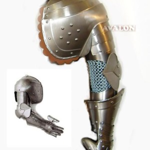 Mittelalter Armschutz. Arm voller mittelalterlicher Rüstungen,..